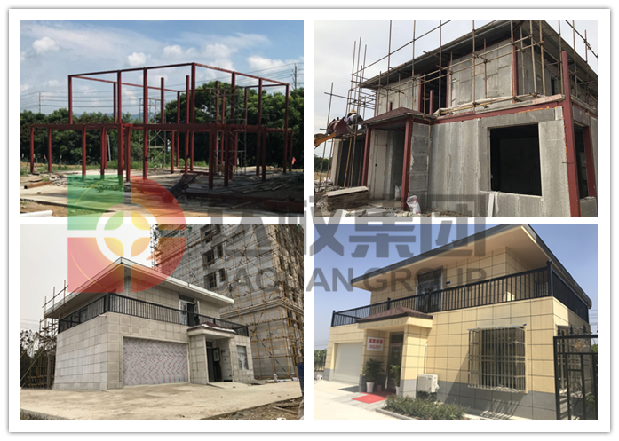 梁、柱、墻板及屋面都采用裝配式的安裝方式,施工速度快,15-20天即可完成安裝